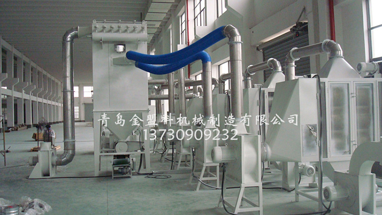 3、輸出部分開松后的纖維從機臺下部的收集器中由強力風機從輸出管道輸出,并可另接管道輸送到指足位置。